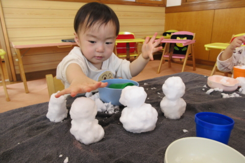 - 2026/01/29 雪が降ってきた♪ 雪や氷に触れながら、不思議な感触を味わって遊んでいる0歳児クラスです! ふわふわ…ひんやり… 小さなかわいい雪玉ができあがりまし... 続きを読む